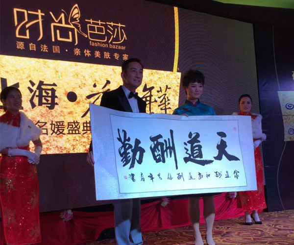 吳啟華贈(zèng)送時(shí)尚芭莎墨寶“天道酬勤”