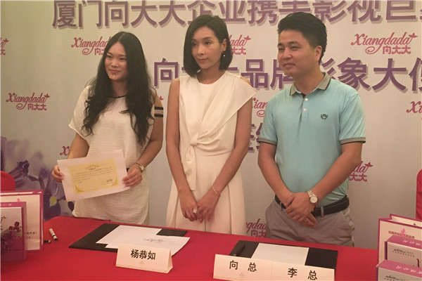 經(jīng)過嘉華明星經(jīng)紀(jì)公司與廈門向大大企業(yè)向總的深入洽談,根據(jù)向大大品牌的市場定位和企業(yè)文化,最終達(dá)成共識,聘請香港藝人楊恭如擔(dān)任向大大品牌形象代言人,于7月11日在北京中國大飯店舉行簽約儀式。楊恭如自2000年開始赴內(nèi)地發(fā)展,隨后主演了《大醉俠》、《我的兄弟姐妹》、《大漢風(fēng)》、《風(fēng)吹云動星不動》、《浴火鳳凰》、《唐宮燕》…等劇。2005年被授聘為上海市預(yù)防艾滋病宣傳大使。2014年擔(dān)任〝愛心包裹項(xiàng)目〞愛心大使,并登上2014中國慈善名人榜,獲得中國慈善名人獎公益典范獎。 2015年推出首本個人心靈主題隨筆─《我和斐濟(jì)有個約會》 與首張個人單曲─《如此美好》。我們相信向大大企業(yè)有楊恭如的加入,定能帶來更高的關(guān)注度與銷售爆點(diǎn)。
